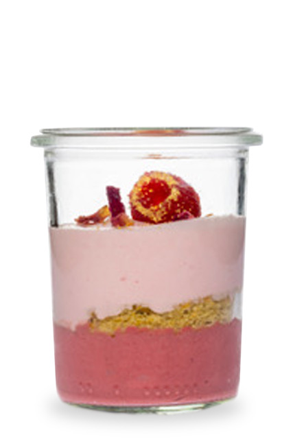 Himbeercrémeux, Pistaziencake, Rosenmousse, Blattgold